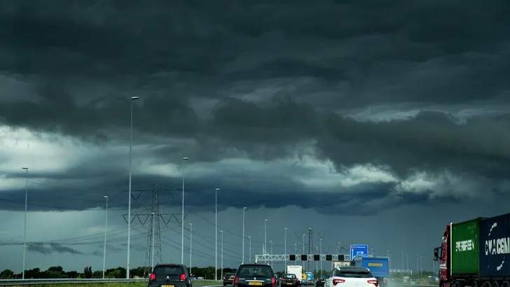 Toch zijn er ook echte problemen die door regenbuien worden veroorzaakt. Neem het Kleinpolderplein in Rotterdam. De naam doet al vermoeden dat het plein op een plek ligt die ooit water was en dat klopt. Het stuk land waar het knooppunt van de A13 en de A20 zich bevindt, ligt zo'n vijf meter onder zeeniveau. Dat maakt het afvoeren van water er wat lastiger. Nu er zoveel tegelijk naar beneden komt blijft het soms liggen. Vanmorgen waren een aantal rijbanen gedurende ongeveer een uur afgesloten omdat ze helemaal blank stonden. Inmiddels zijn de banen weer vrij: de file staat er echter nog steeds.