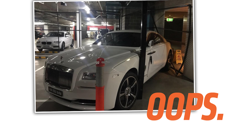 U heeft ze wellicht eens voorbij zien komen: garages onder hele dure appartementencpmplexen die zijn volgepakt met even zo dure exoten. Voor een petrolhead is een wandelingetje tussen de McLarens, Ferrari's en Koenigseggs een hoogtepunt van de dag. Onder één van dit soort complexen in Australië liet een rijkaard een stalen kooi rondom zijn nieuwe Rolls-Royce Wraith bouwen, opdat helemaal niemand ooit zijn nieuwe trots kon beschadigen. Behalve hijzelf dan. Dat is precies wat er al heel snel gebeurde, getuige de foto's van een gebutste Geest die Jalopnik in handen kreeg: kennelijk is 5,4 meter aan Rolls toch niet zo makkelijk uit te parkeren.