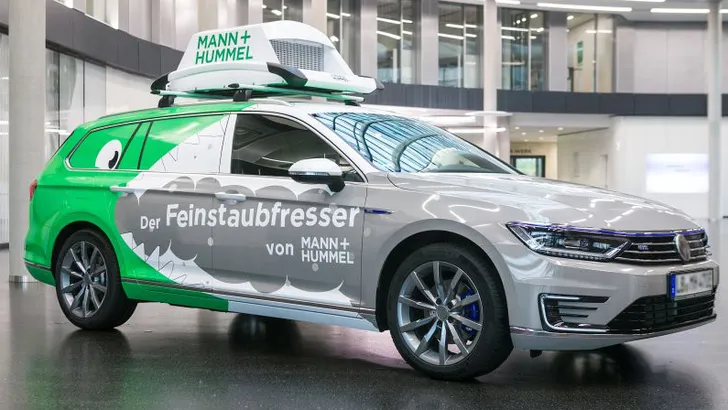 Filterbedrijf Mann+Hummel bouwde een VW Passat GTE om tot een fijnstofreiniger van formaat. Zeker als hij op zijn accu's rijdt is de auto eerder een brenger van schone lucht dan een luchtvervuiler. Daarvoor bouwden de filteraars drie van hun systemen in de auto in die ze de Fijnstofvreter noemen.