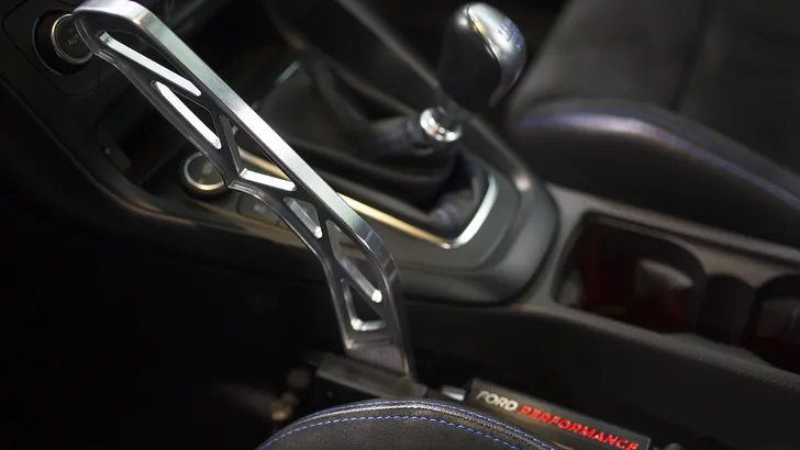 Ford probeert de aspirant-drifters nu een beetje op weg te helpen, en dat is - gezien de capriolen die sommige Mustangbestuurders uithalen - geen overbodige luxe. Hiervoor is de 350 pk sterke Focus RS uitverkoren, een auto die geen achterwiel-, maar vierwielaandrijving heeft. Niet de beste basis voor gladde drifts, maar soit. De Drift Stick (approved by Ken Block) is een elektronische handrem die tussen de bestuurder en de versnellingsbak wordt geplaatst, en moet helpen het kontje iets soepeler om te krijgen.
