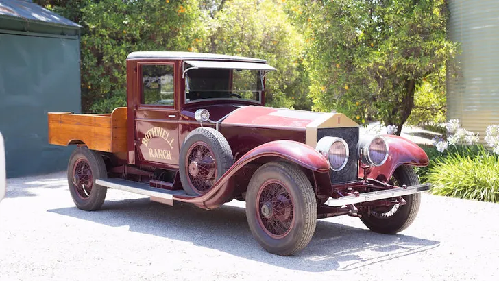 Jarenlang diende deze Silver Ghost pick-up uit 1926 als manusje van alles op een sinaasappelboomgaard in Californië. Toch kwam de auto niet als pick-up naar de Verenigde Staten; aanvankelijk was het een gewone koets waar rijken zich door hun chauffeur in lieten vervoeren.