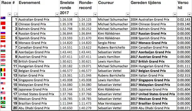 Voor de afbakening: een ronderecord wordt gereden tijdens een race, de snellere kwalificatierondes tellen hier niet mee. Hiermee komen we op....
