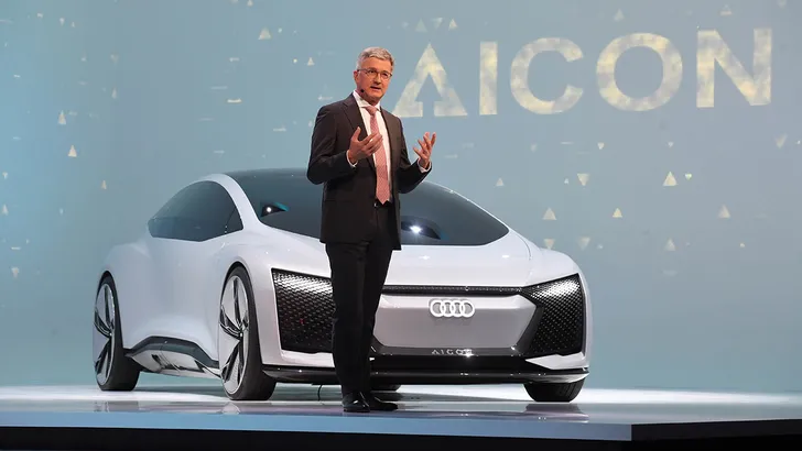 Audi stopt niet al zijn eieren in het elektrische mandje, ook de brandstofcel wordt in de toekomstplannen meegenomen als 'wezenlijk element'. Daarnaast moet er in 2021 een 'productiemodel' staan van de hieronder afgebeelde Aicon, een in grote mate autonoom luxevoertuig, Hierover is Audi echter bewust vaag: het gaat een serie bouwen van 'misschien 10, misschien 500 stuks', die het ergens in een high-profile oord laat rondrijden. Als hierbij 'Dubai' direct in uw gedachten komt, kon u wel eens dicht bij de waarheid zitten.