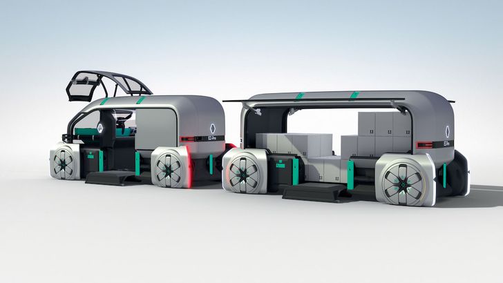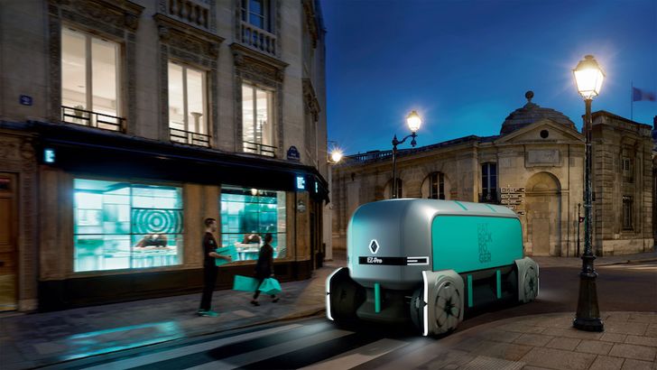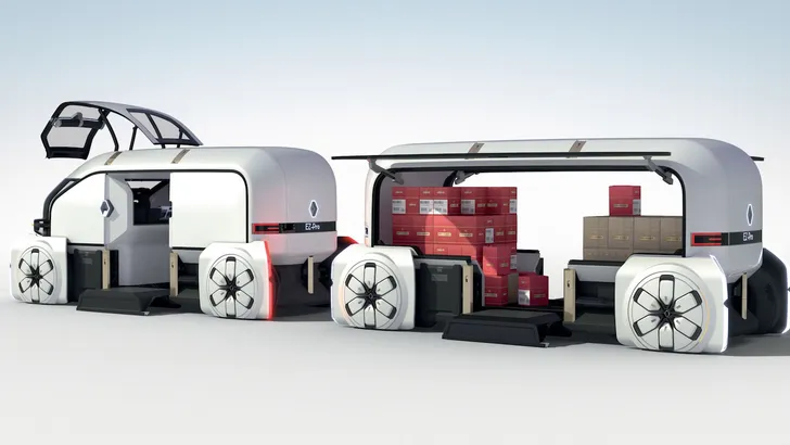 Maar er is nog meer verkeer in de stad: er moeten ook goederen geleverd worden. Dit kan volgens Renault het beste autonoom, in deze klimaatneutrale EZ-PRO. Het ziet eruit als een oversized en vierkantere Twizy, en je kunt er diverse modules aankoppelen. Kortom: het ding is flexibeler dan Ronnie. Als we even buiten beschouwing laten dat dit met de huidige stand der techniek in een Nederlandse stad nooit een meter zou rijden omdat er constant fietsers en voetgangers voor langs knallen (en dat hij in de eerste de beste kansenwijk zo gedemonteerd wordt), is het idee erachter niet onaardig: in een toekomst waarin alles connected is - en iedereen bovendien alles vanachter zijn tablet bestelt - kan dergelijk goederenvervoer een belangrijke bijdrage leveren aan een efficiënte goederenstroom.