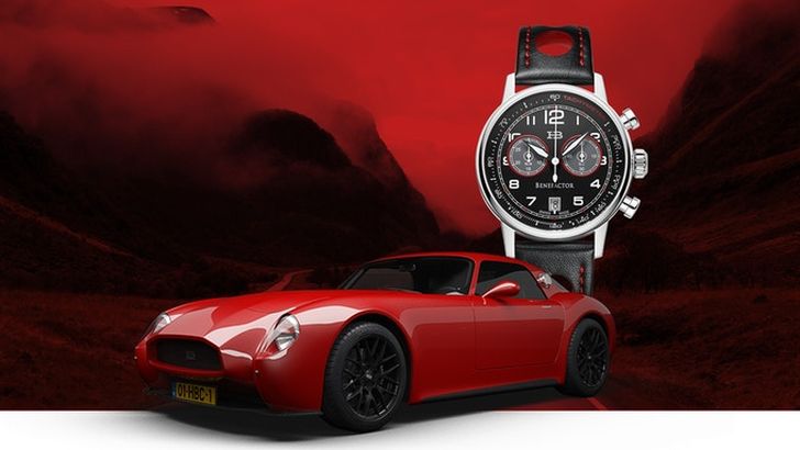 Om het geld voor de ontwikkeling van de HB Coupe bij elkaar te krijgen is een kickstarter-campagne begonnen. Hierbij kunt u zich voor €295 intekenen voor de HB Benefactor Chronograph, een klokje dat omschreven wordt als 'Swiss Made Ronda Movement caliber 5021.D.0001 which is a gold-plated, 10 Jewel repairable quartz movement made with Swiss parts in Switzerland'. Ja, dat is heel veel 'Swiss' in één zin, uitleg van de gebruikte termen vindt u hier.