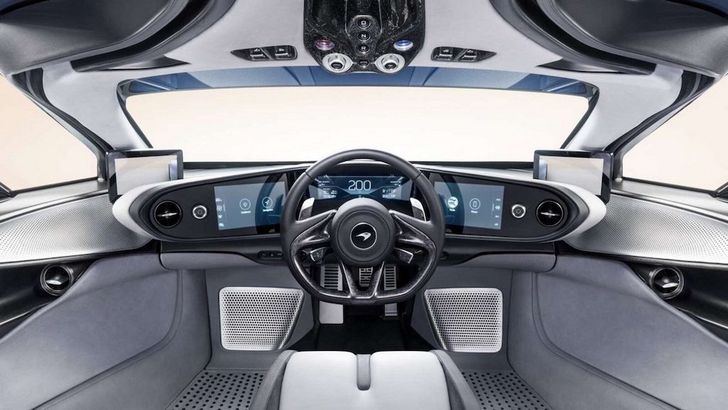 De Langheck uit de jaren '70 is weer helemaal terug. We zagen Porsche eerder deze maand een Moby Dick-hommage maken, en McLaren bewandelt dezelfde weg met de Speedtail. Je moet ervan houden, maar je kunt - zeker na de Senna - niet ontkennen dat McLaren niet schroomt de dingen lekker anders aan te pakken. We zien aerodynamische chromen putdeksels op de voorwielen (met een uitsparing voor de remklauw?) en verder valt de ranke stroomlijn vooral op, waardoor de auto een topsnelheid van minimaal 390 km/u kan halen. Let ook op het ontbreken van buitenspiegels. Evenals bij de Audi e-tron zien we in de cockpit schermen die de beelden van spiegelcamera's tonen. En die cockpit, wow! Strak en minimalistisch, en natuurlijk gefocust op de rijder, net zoals in de F1. Bovendien hoeft McLaren hierdoor geen links- of rechtsgestuurde varianten te maken.