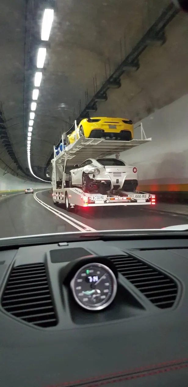 De bus schraapte langs de eerste (gele) Ferrari en kwam vervolgens tot stilstand tegen de achterkant van de tweede (witte) supercar die zichzelf vervolgens in de derde (blauwe) Italiaanse vierwieler boorde. De vierde auto werd alleen aangetikt door de derde en kwam er vanaf met een deukje in de nummerplaat. De eigenaar besloot daarom ook geen schadeclaim voor die auto in te dienen. Overigens stonden de vier daar geparkeerd omdat de eigenaren hadden afgesproken om die dag een ritje te maken.