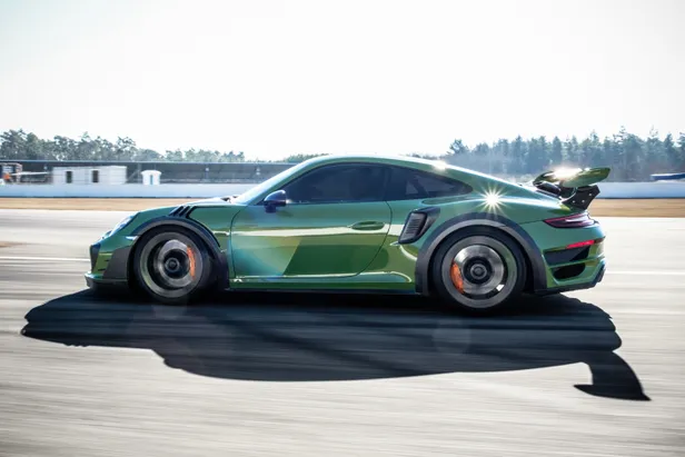 De Autosalon van Geneve staat weer voor de deur en niet alleen autofabrikanten strooien links en rechts met primeurtjes. Ook de tuners beginnen langzaam maar zeker hun waar te tonen. Speciaal voor de gelegenheid komt Porsche-specialist TechArt met een wonderlijke creatie: een opgeblazen 911 Turbo RS met 770 pk en 920 Nm (!) uit de 3,8 liter twin-turbo zespitter. Dat levert flink wat spektakel op.