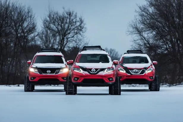Is een gewone sneeuwscooter u te spartaans, kijk dan eens naar een volwaardige auto op rupsbanden. Nissan maakte er voor de Amerikaanse PR drie tegelijk. Ideaal om de 2.000 km aan file mee te omzeilen, als het in Nederland weer eens sneeuwt.