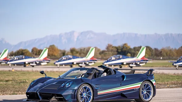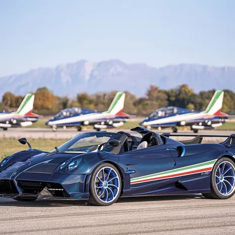 Tien jaar geleden zette Pagani de Frecce Tricolore (driekleurige pijlen) met de Pagani Zonda Tricolore. Nu is de Pagani Huayra de aangewezen kandidaat om een extraspeciaal model te maken voor de showvliegers van de Italiaanse luchtmacht.