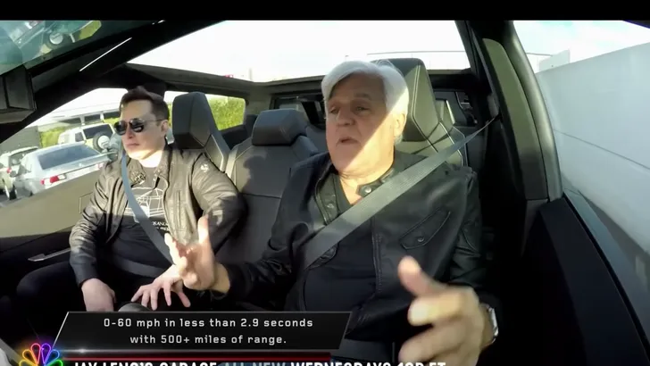 Hoewel het nog minimaal een jaar duurt voordat we de Tesla Cybertruck bij de dealers tegenkomen, mocht Jay Leno de wagen alvast proberen. Elon Musk kwam met een Cybertuck naar Jay Leno's Garage voor een ritje met de nieuwe pick-up die Amerika moet gaan veroveren. Lees verder >>