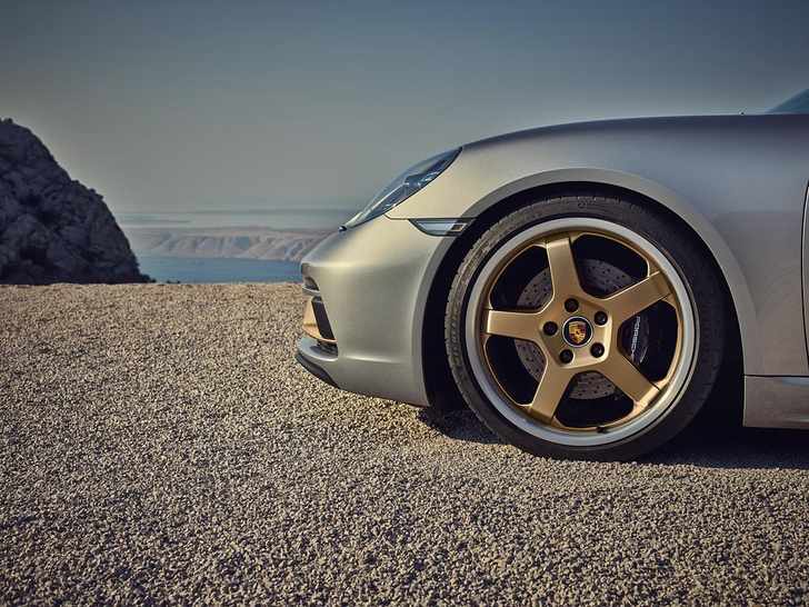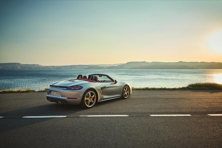 De Porsche Boxster 25 Years is gebaseerd op de 718 Boxster GTS 4.0 met zijn 400 pk sterke zescilinder boxermotor. Het uiterlijk is daarbij gebaseerd op het conceptmodel uit 1993. Met die bijzondere verf en de speciale accenten. Het neodyme is aangebracht op de voorspoiler, de luchtinlaten op de flanken, de belettering en de tweekleurige 20-inch wielen. Andere opvallende details zijn het aluminiumkleurige tankdeksel met Porsche-inscriptie, de aluminium eindstukken van de sportuitlaat en de zwarte omlijsting van de voorruit. Wie niet van zilver houdt kan de Boxster 25 Years ook bestellen in de kleuren Diepzwart metallic en Carrarawit metallic.