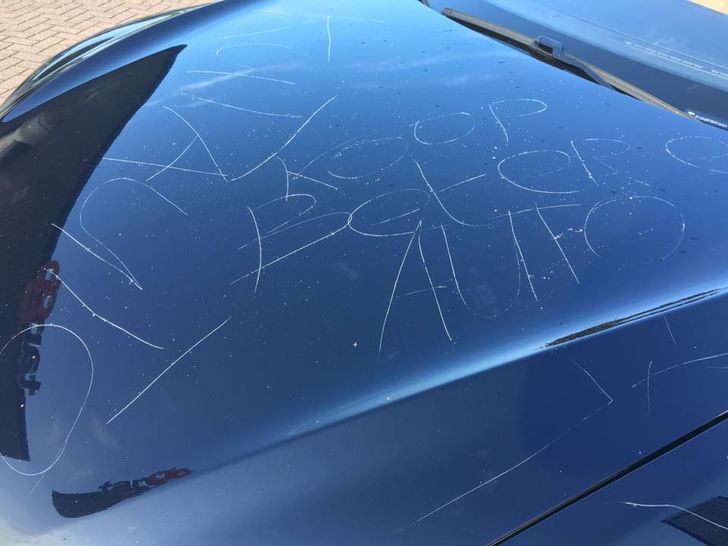 Foto: Vandalisme op Tesla Model S, in Breda, 2016.