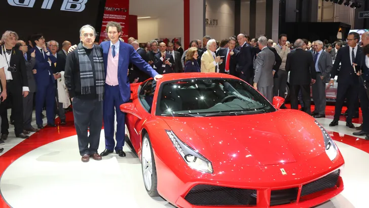Foto: Ferrari-baasjes Sergio Marchionne en John Elkann bij de introductie van de 488 GTB