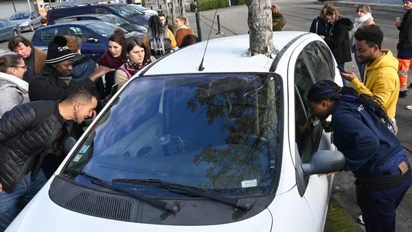 Het beeld van de auto met een boom er dwars doorheen leverde gisteren in het Franse Nantes grote hilariteit op. Mensen vroegen zich af hoe de kunstenaars het voor elkaar hadden gekregen om een boom dwars door een auto te krijgen zonder hem om te hakken. Ongetwijfeld is er toch ergens een zaagsnede te vinden, want anders komt het houten gevaarte nooit door het metalen karkas heen.