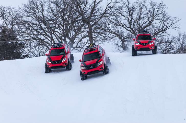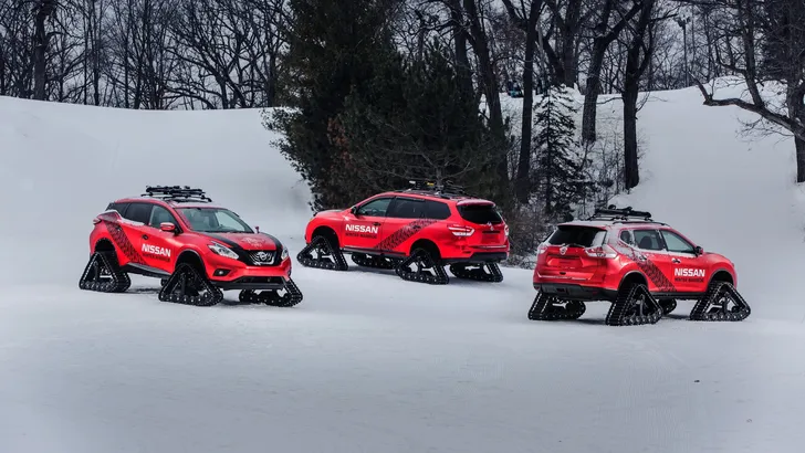 Fans van Ghostface Killah krijgen bij het horen van de naam meteen een deformatie naar Winter Warz, maar deze 3 Nissans heten Winter Warriors, klein verschilletje. Nissan had nog een uitsmijtertje nodig voor de aankomende Chicago Auto Show, en dus werden een Pathfinder, Murano en Rogue op rupsbanden van 1,20 meter lang en 75 centimeter hoog gezet. Fotograaf en videocamera erbij, profit!