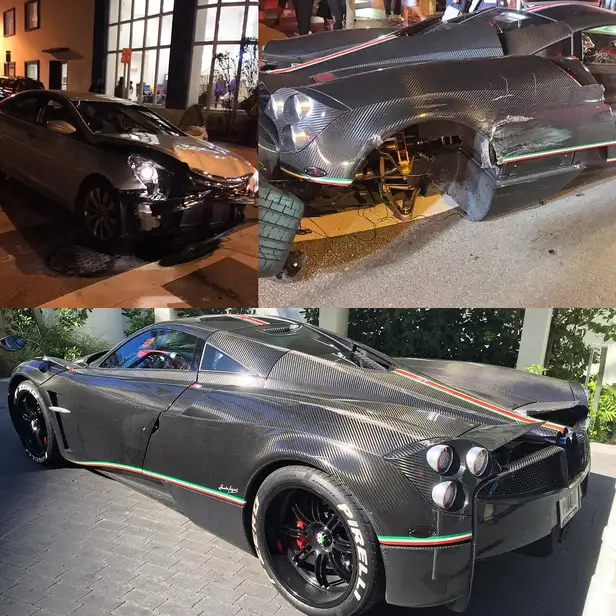 Naar verluidt is een Uber-chauffeur verantwoordelijk voor deze carbon genocide. Singh vertelt: I was traveling northbound on Collins Ave when someone pulled out from a side street and hit the rear passenger side of my Pagani Huayra. I was going the speed limit and I didn't see it coming at all.