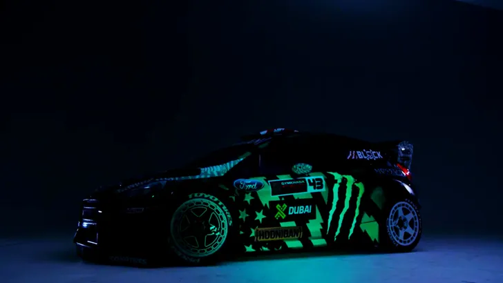 Ken Block is een Hooningan met een Ford-sponsorcontract. Voor deel 8 van zijn Gymkhana-series grijpt hij terug op een oude favoriet, een Fiesta met extra cayennepeper. De auto pakt extra shine met zijn coole reflecterende paint job.
