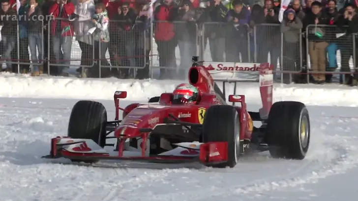 Het is een met PR-taal doorspekte video geworden die alleen daarom al weg dient te kwijnen in de marge van YouTube. Toch, ergens achter alle slijmpraat zien we iets moois. De Ferrari F60 uit 2009 waar Giancarlo Fisichella op een blauwe maandag in reed, uitgerust met soort-van winterbanden en losgelaten een piste in de Italiaanse Alpen. Door Fisichella. Ja ja, we weten het, Verstappen did it. Maar dit is ook leuk.