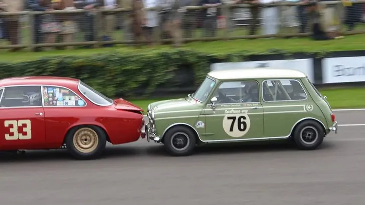 Vintage automobielen op Goodwood! De Morris Mini Cooper S van Nick Swift raakt in een epische strijd verwikkeld met de Alfa Romeo 1600 GTA van Alex Furiani. Wat volgde was een ongelooflijke tweestrijd die van u een instant petroleumhoofd maakt, gevolgd door urenlange zoeksessies op Marktplaats naar een oude Alfa. Of Mini.