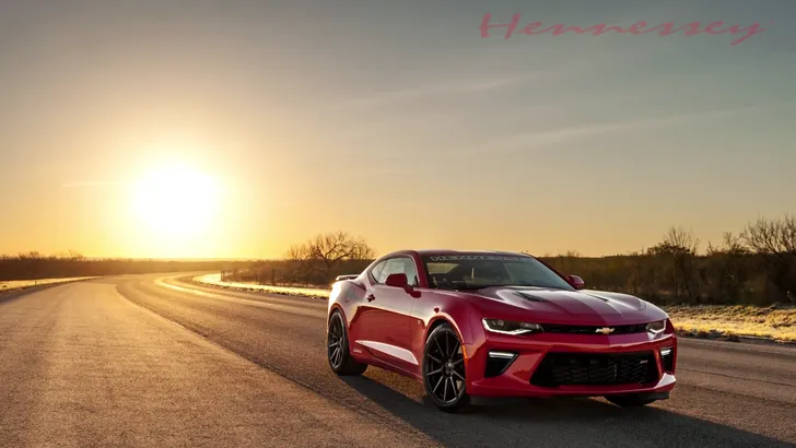 Uiteraard haal je dit niet met een standaard Camaro. De heren van Hennessey Performance hebben de V8 mede dankzij het gebruik van lachgas opgeschroefd tot 761 pk. Daarnaast heeft de veredelaar het geluk dat ze een ovaal circuit van bijna veertien kilometer lang bij de hand hebben, zodat ze het maximale uit de annabolenmuscle car kunnen halen.