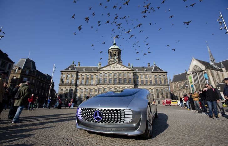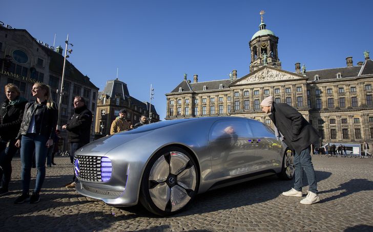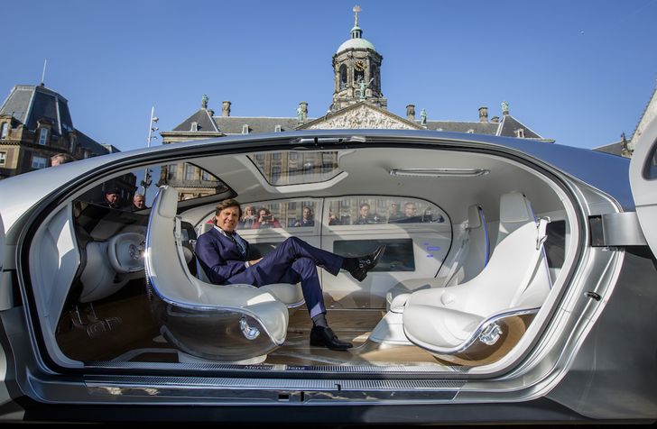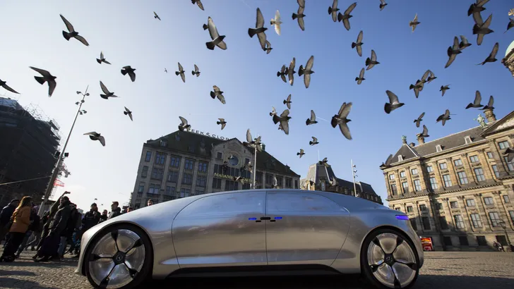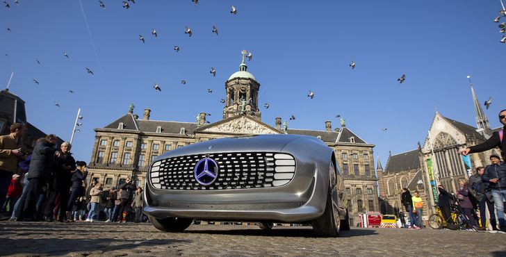 De toekomst-Mercedes met 272 elektrische pk's dateert alweer van januari 2015. De Duitsers hebben hem nu naar Nederland gehaald in het kader van 'een informele vergadering van Europese transportministers' op 14 april. Waar Schultz en consorten zullen praten over de dood toekomst van de automobiel: zelfrijdende auto's en de communicatie onderling.