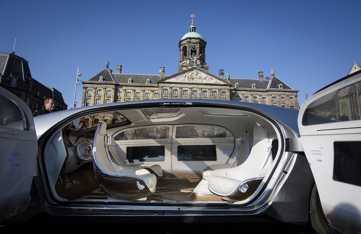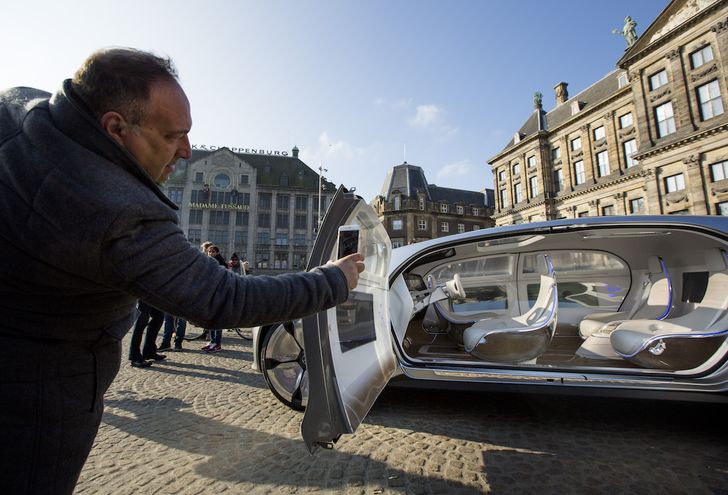 Mercedes gaf daar met de F 015 Luxury in Motion een aardige kijk op. In de 5,22 meter lange conceptcar kunnen de zetels naar elkaar toe draaien (conversaties!), is in ieder portier een groot touchscreen verwerkt en wordt het hele idee van een BOB overbodig gemaakt. Overigens hebben we in alle demofilmpjes (voorbeeld) de auto nog niet écht zelf zien rijden, er zat altijd een Mercedes-meneer achter het stuur. Iets dat dit verhaal meteen een stuk minder spannend zou maken voor de landelijke media, dus hou dat svp nog even stil.