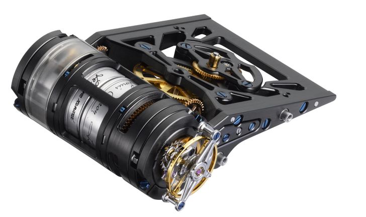 Zo heet het uurwerk, want kennelijk maken niet alleen autofabrikanten concepts. Behalve de aparte vorm is op de opengewerkte foto's goed te zien dat er dit een vrij complex klokje is, of zoals PF het zelf zegt: "this new generation of Bugatti timekeepers bears a tubular, concentric movement with a coaxial structure of astounding complexity. It was conceived in reflection to the Bugatti Chiron, a Super Car and marvel of engineering." We hadden het zelf niet bloemrijker kunnen opschrijven.