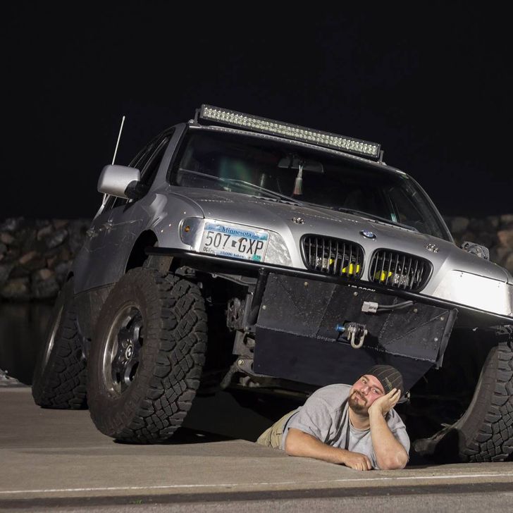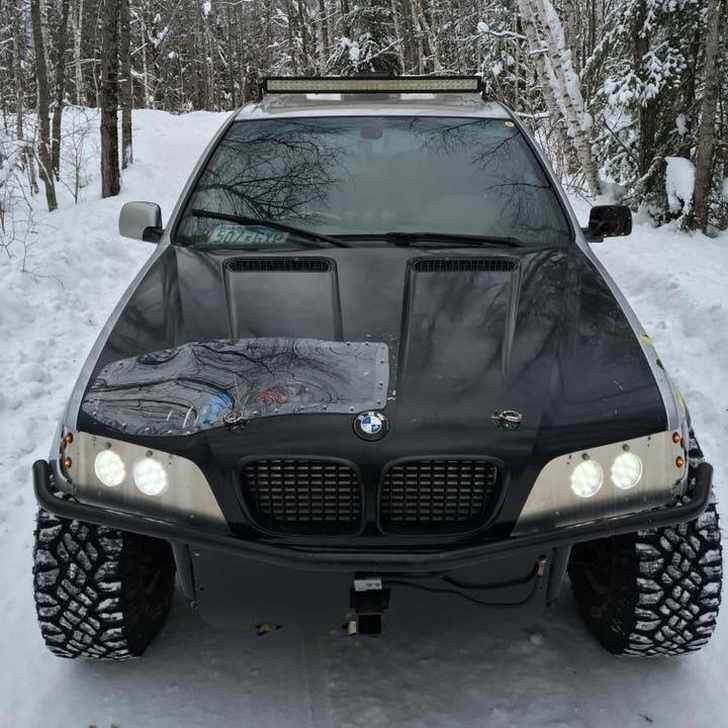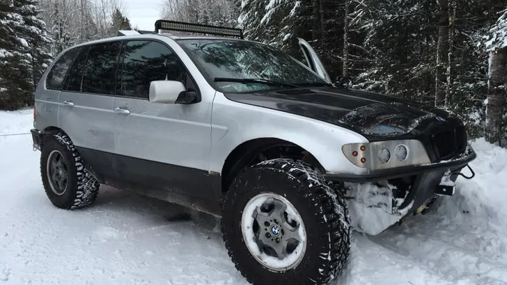 Marktplaats wordt momenteel overspoeld door BMW X5'jes van de eerste generatie voor rond de €5k. Grote, logge SUV's met zes- en achtcilinders die een vermogen kosten in wegenbelasting (rond de €340 per kwartaal voor deze X5 4.4 V8 bijvoorbeeld) en bij iedere onderhoudsbeurt een gat in je begroting slaan. Echt. Hoe aantrekkelijk geprijsd ook: Koop. Ze. Niet. Tenzij... Tenzij je ermee doet wat de Amerikaan (duh) Brian Foster deed. Hij verving de plastic bumpers van zijn X5 voor metalen scheenbeenslopers, maakte de koplampen hufterproof en lepelde onder luid gejuich van een meute roodnekken een Chevy 4.8 V8 in de motorruimte, onder druk gezet door een Garret GT45 turbo. Samen met een set offroad banden en een rolkooi prima materiaal om de onverharde wegen des leven op te zoeken. Tevens een geschikte kandidaat voor onze lijst met Honderd Auto's Waarmee Je de Apocalyps Overleeft (verschijnt in augustus als paperback bij Meulenhof).