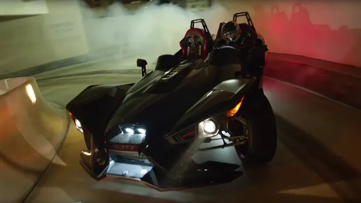 Grote wolken verbrand rubber en een brullende motor met 400 pk. Driftkampioen @Tanner Foust mocht zich uitleven in San Diego. Toch zijn er geen dubbele zwarte strepen op asfalt te vinden, want deze keer zat hij in een aangepaste Polaris Slingshot. Een driewieler dus. Geen enkel probleem voor de driftkoning die het achterwiel met veel visueel spektakel naar de klote helpt.