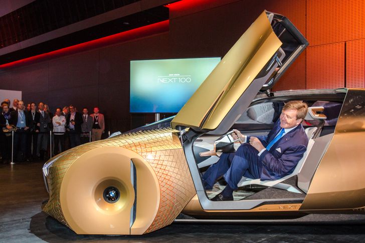 Daarnaast ontbrak landgenoot Adrian van Hooydonk, hoofdontwerper van de BMW Group, evenmin. Hieronder zien we hem het Vision Next 100 Conceptdinges aanprijzen.