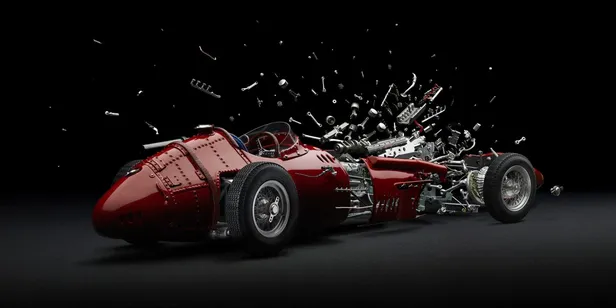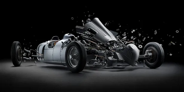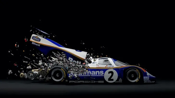 Hij construeert de foto's door de onderdelen los te fotograferen en honderden bewerkte foto's in één grote te copypasten. Heel veel tijd voor iets dat slechts een splitseconde weergeeft. Als we grote brilmonturen droegen hadden we daar ongetwijfeld iets heel kunstzinnig in gezien. Doen we niet, dus kijken we hier gewoon naar de mooiste foto's van een Auto Union Type C, Maserati 250F, Ford GT40, Bugatti 57 SC en Porsche 956 die we in tijden hebben gezien.