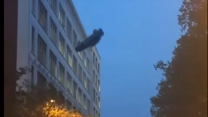 Not quite. De blauwe auto die hier gelijk een sodomist in sharialand head first van een gebouw wordt geknikkerd figureert in Fast 8, het nieuwste deel in de filmfranchise die het popcornpubliek al sinds 2001 vermaakt met stampende cilinders en meer schakelbewegingen dan een trucker bergop, vrouwvlees dat schaarser gekleed gaat dan Skeletor Bella Hadid, en meer testosteron dan een Keuls plein tijdens de jaarwisseling.