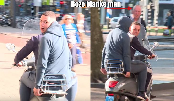 Niet dus. Twee hongerige hyena's op een tweewieler die toevallig net een middagje vrij hadden van hun werk en hun huiswerk al hadden gemaakt besloten het camerateam van Pownews -naast het stadhuis van Rotterdam- even lekker te provoceren. Eerst werd de presentatrice op een fluim getrakteerd (00:54, zó laag), en daarna volgden de gebruikelijke 'kk's' en 'jullie moeders'. Enfin, u kent het niet bijster uitgebreide vocabulaire inmiddels wel. Je bent jezelf niet als je honger hebt.