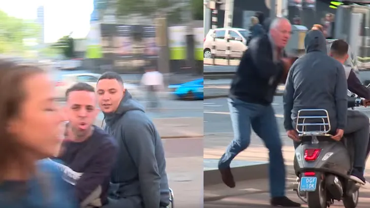Tijdens hun capriolen schijnen de hyena's nog bijna een oudere man omver gereden te hebben, en dus besluit van Rij die even verderop staat de boys een tik met zijn tas te verkopen, wat hem vanochtend op een reprimande van de GroenLinks-fatsoensmaffia kwam te staan. Je moet immers (na zonsondergang) een bakje thee met ze drinken, en de dialoog aangaan. Klinkt als logica van iemand die haar eigen kinderen op de muren laat tekenen, 'omdat ze zich moeten kunnen ontplooien'. Zachte heelmeesters...