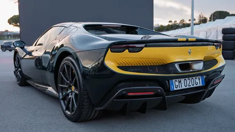 Het lijdend voorwerp van deze klucht is een Ferrari 296 GTB, een van de meest geavanceerde modellen die momenteel uit Maranello rolt. Onder de motorkap ligt een V6-motor gekoppeld aan een elektromotor, goed voor een systeemvermogen van 830 pk.