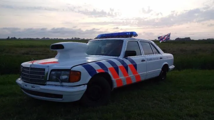 De 500 SEL heeft een 4.973 cc V8 onder de kap, die ooit 245 pk had, maar nu niet meer. Ook een straattoelating zit er niet meer in, want de APK verliep in 2014. Wat je er dan wel mee kan: lekker door het weiland crossen natuurlijk, zijn ze in Friesland gek op. Omdat de auto er ook nog een beetje blits uit moet zien is meteen een hood scoop van het formaat funny car gemonteerd, omdat het kan ken. Dat de motorkap niet meer helemaal aansluit is bijzaak, je kunt er toch niet mee door het PC Hooft-equivalent van Vrouwenparochie, waar de Benz te koop staat.
