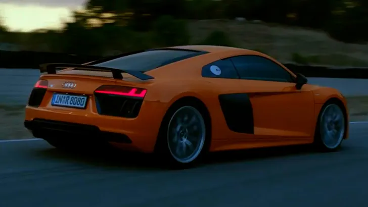 Laten we eens kijken hoe een dergelijk opheffilmpje er uitziet. De camera focust op een menselijk oog, waarin een voorbijtrekkend straatbeeld reflecteert, ondersteund door de fijne R8 V10-soundtrack en een pupil die samentrekt en uitzet: