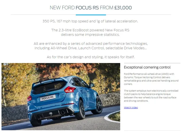 Naast de Audi-klacht die het haalde, klaagde tevens één (1) persoon met niets beters te doen in zijn leven dan klagen over reclames - we sluiten niet uit dat het dezelfde persoon is - over de manier waarop een Ford Focus RS in het VK op het net aangeprijsd wordt. We citeren: