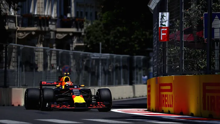 De snelste ronde in de eerste sessie werd door Max op de zachtst beschikbare Supersoft-compound afgelegd in 1:44.410. Teammaat Ricciardo zat vier tienden achter hem. Tegen het eind werd de sessie stilgelegd doordat Perez zijn Force India op het smalste stukje F1-circuit van het jaar in de muur reed. Vorig jaar crashte de Mexicaan ook al op het circuit, toen in de laatste vrije training.
